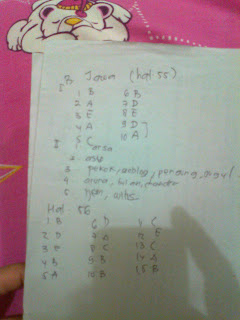 | Ini bukan contekan ! Waktu pelajaran, aku lupa bawa LKS. Ya, ini hasilnya ! |