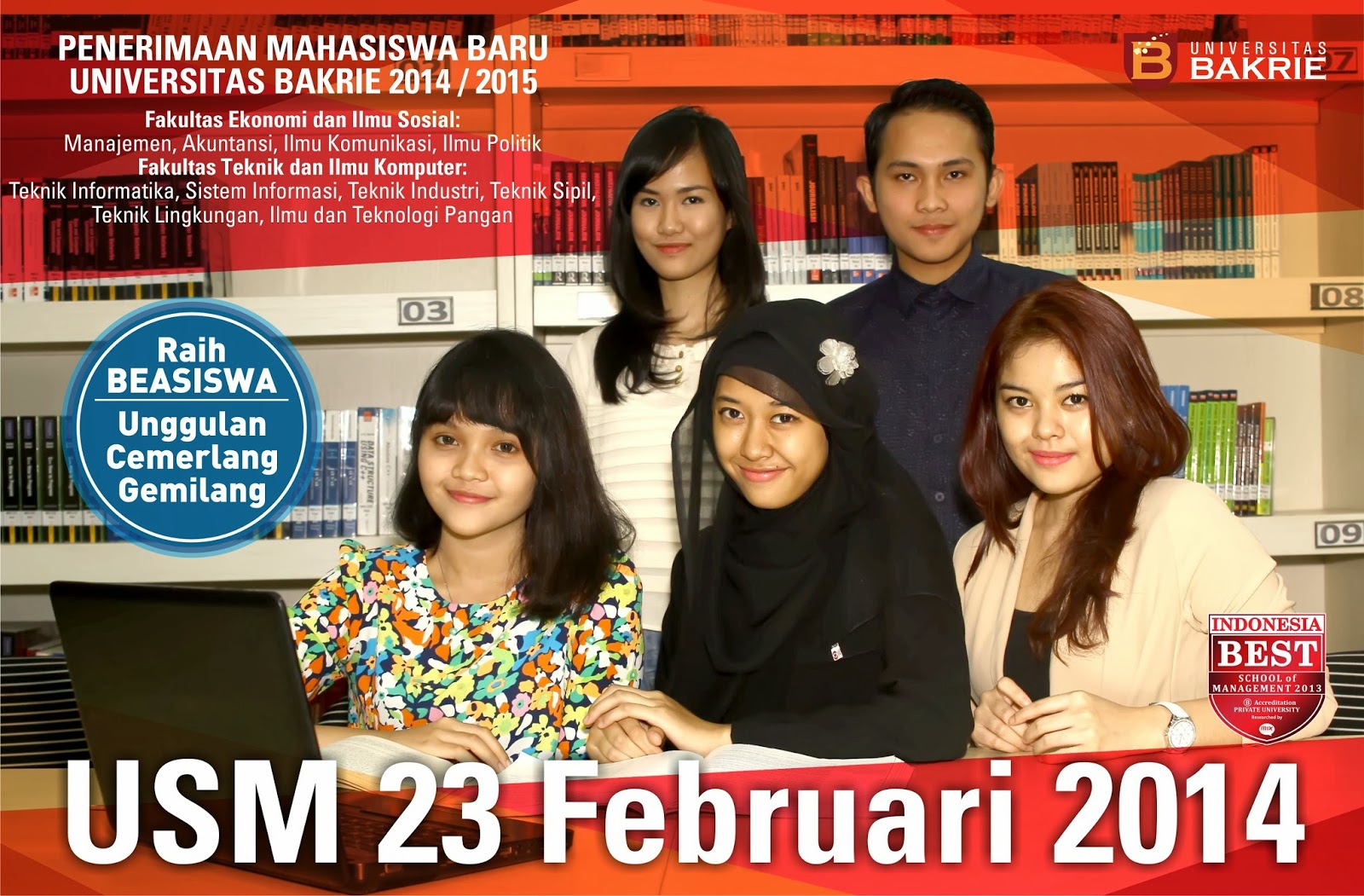 Akan tetapi soal Ujian Saringan Masuk (USM) Universitas Bakrie, ada hal yang berbeda dibanding tahun lalu tentang waktu pelaksanaannya. Jika tahun lalu setiap bulan selalu ada USM Universitas Bakrie, untuk tahun ajaran ini, sampai bulan Februari hanya dilakukan dua kali USM Universitas Bakrie, yaitu bulan November lalu dan yang kedua di tanggal 23 bulan Februari 2014. Jadi, jika kebetulan kamu sedang membaca tulisan ini dan berniat untuk masuk di Universitas Bakrie, bisa langsung cek saja di websitenya Universitas Bakrie.