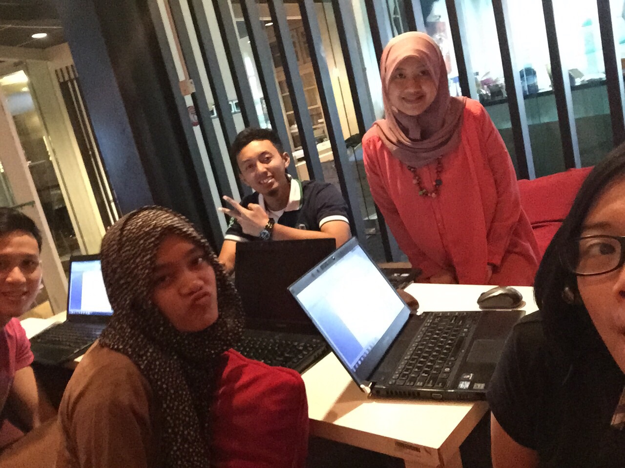 ini), meja kerja setiap orang berubah-ubah tergantung siapa yang datang terlebih