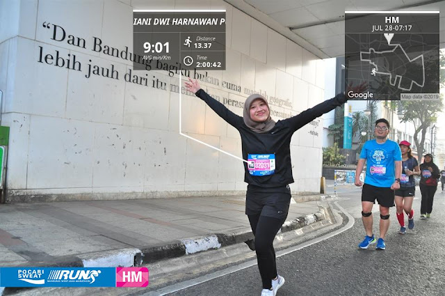 Ternyata saya bisa menyelesaikan (half) marathon pertama saya! Meskipun dengan persiapan yang masih kurang, saya cukup bangga dengan diri saya karena bisa berlari selama 21.1km tanpa henti, meskipun dengan waktu tempuh yang mendekati batas cut off haha!